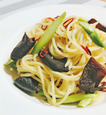 きくらげとアスパラのペペロンチーノ