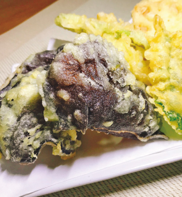 5.揚がった天ぷらをお皿に盛り付け、お好みで大根おろしを添える。